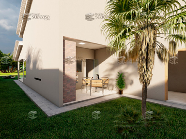 Área Construída: 106,79 m². 02 Quartos - 01 Suíte; Telhado Colonial; Jardim Exuberante; Fachada Inovadora; Sala com Boa Altura; Cozinha Conjugada; Espaço Gourmet; 01 Vaga de Garagem.